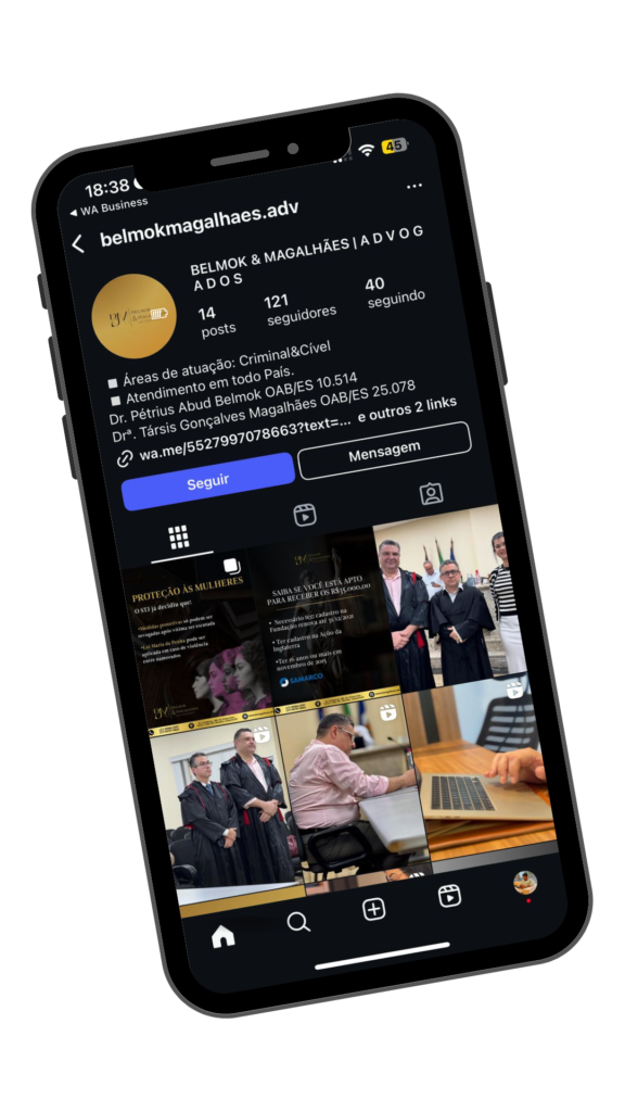 Você pode me encontrar também nas redes sociais, pelo perfil do instagram @belmokmagalhaes.adv e conferir mais sobre o meu trabalho.